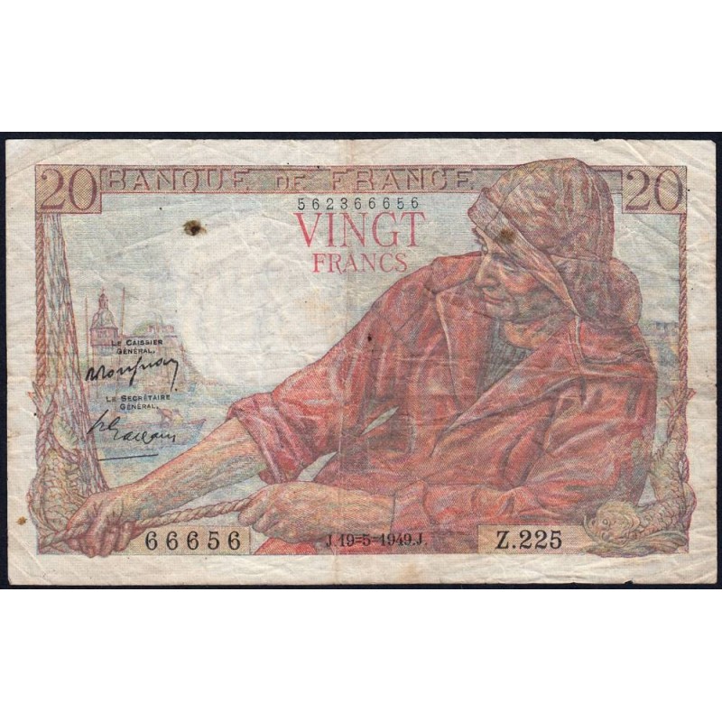 • F 13-15 - 19/05/1949 - 20 francs - Pêcheur - Série Z.225 - Etat : TB-