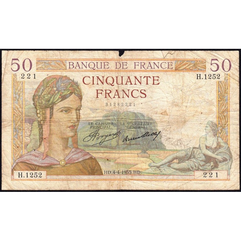 • F 17-07 - 04/04/1935 - 50 francs - Cérès - Série H.1252 - Etat : B