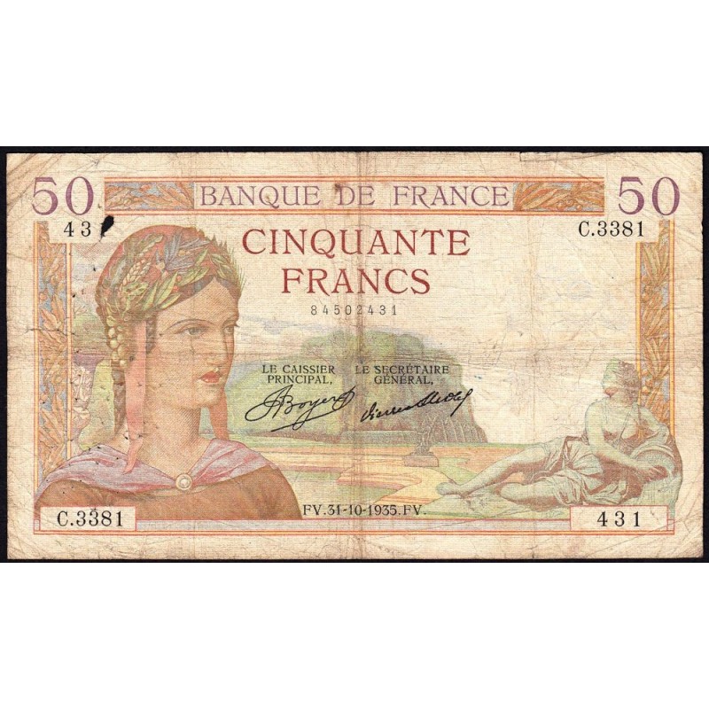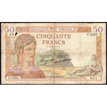 F 17-19 - 31/10/1935 - 50 francs - Cérès - Série C.3381 - Etat : B+