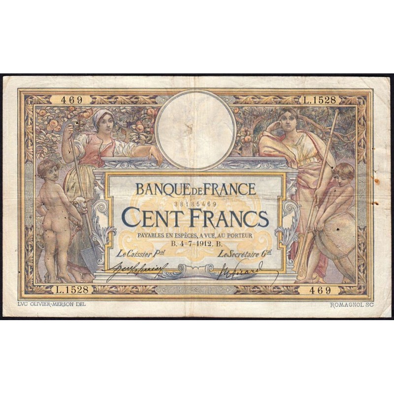 F 23-04 - 04/07/1912 - 100 francs - Merson sans LOM - Série L.1528 - Etat : TTB-
