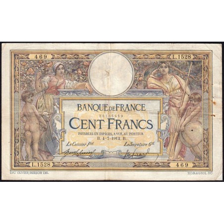 • F 23-04 - 04/07/1912 - 100 francs - Merson sans LOM - Série L.1528 - Etat : TTB-