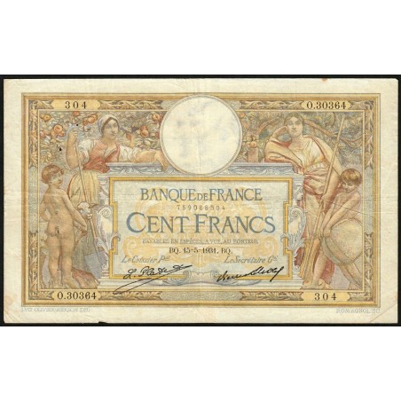 • F 24-10 - 15/05/1931 - 100 francs - Merson grands cartouches - Série O.30364 - Etat : TB+