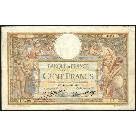 • F 24-11 - 04/02/1932 - 100 francs - Merson grands cartouches - Série T.33987 - Etat : TB