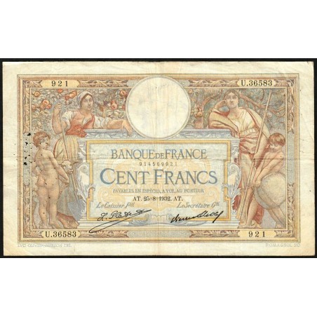 • F 24-11 - 25/08/1932 - 100 francs - Merson grands cartouches - Série U.36583 - Etat : TB