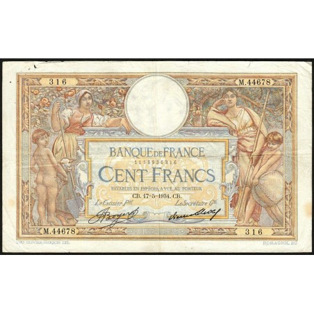 • F 24-13 - 17/05/1934 - 100 francs - Merson grands cartouches - Série M.44678 - Etat : TB+
