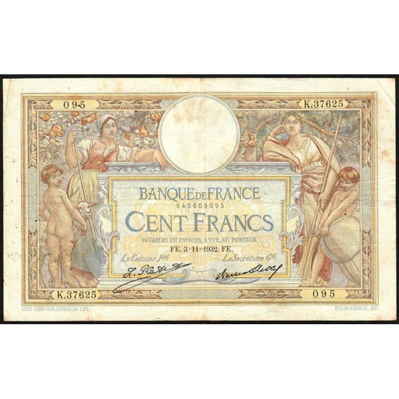 • F 24-11 - 03/11/1932 - 100 francs - Merson grands cartouches - Série K.37625 - Etat : TB