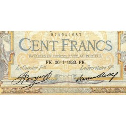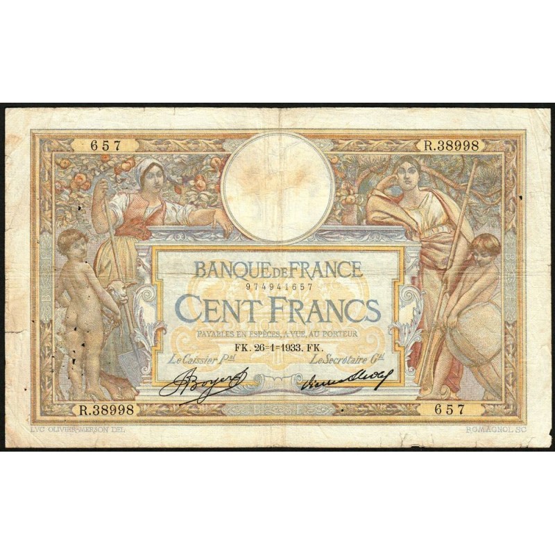 • F 24-12 - 26/01/1933 - 100 francs - Merson grands cartouches - Série R.38998 - Etat : TB