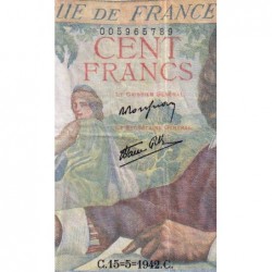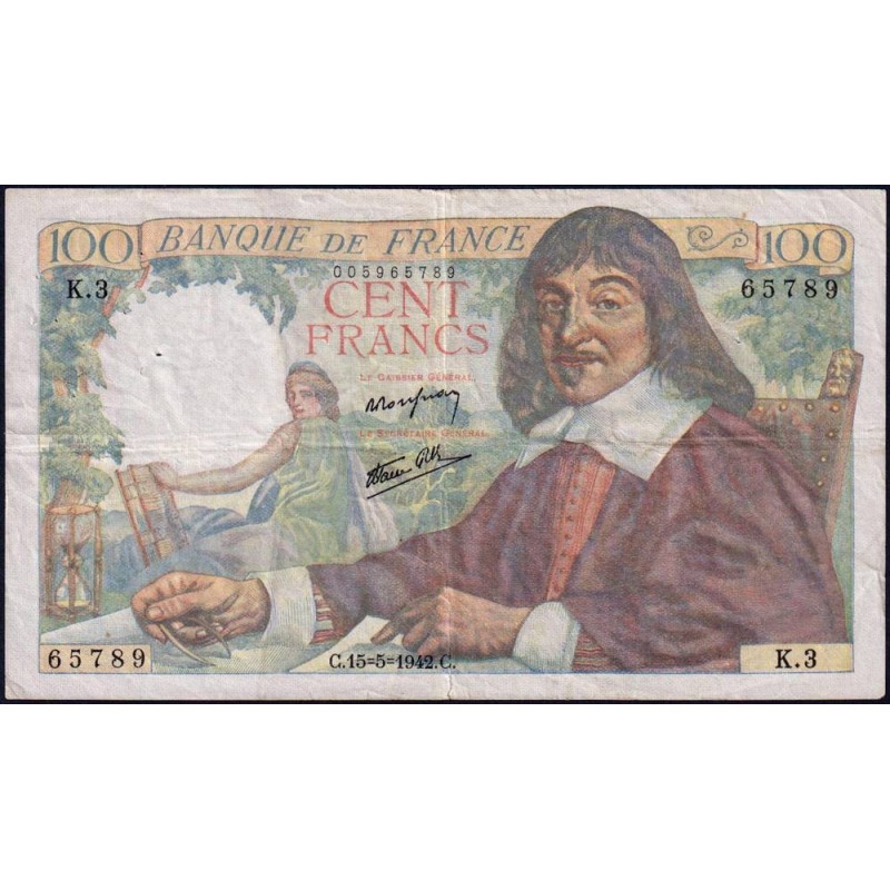 • F 27-01 - 15/05/1942 - 100 francs - Descartes - Série K.3 - Etat : TB+