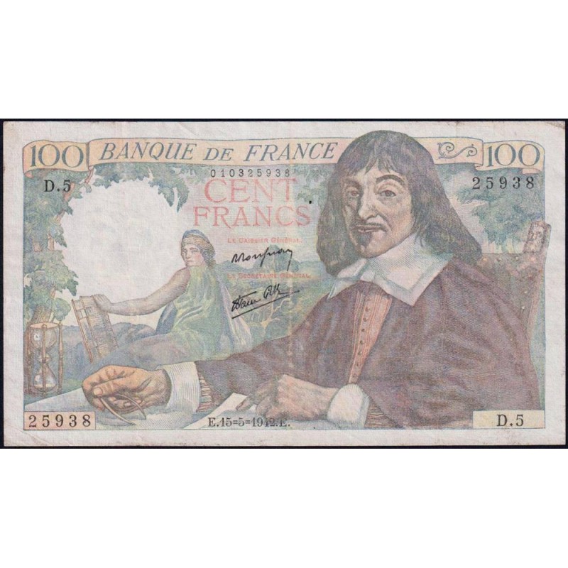 • F 27-01 - 15/05/1942 - 100 francs - Descartes - Série D.5 - Etat : TB-
