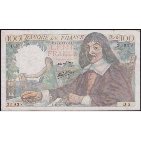 F 27-01 - 15/05/1942 - 100 francs - Descartes - Série D.5 - Etat : TB-