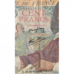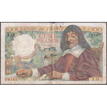 • F 27-01 - 15/05/1942 - 100 francs - Descartes - Série X.13 - Etat : TB