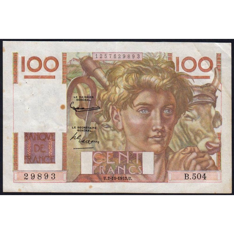 F 28-34 - 02/10/1952 - 100 francs - Jeune Paysan - Série B.504 - Etat : SUP-