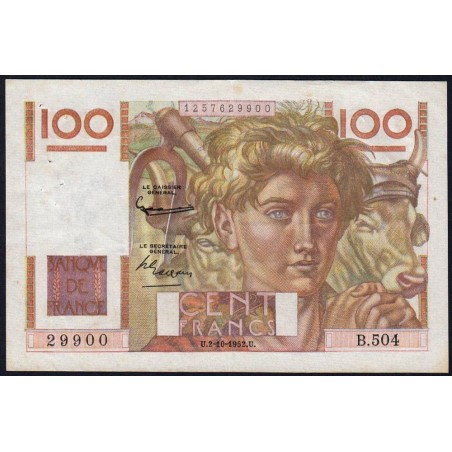 F 28-34 - 02/10/1952 - 100 francs - Jeune Paysan - Série B.504 - Etat : SUP