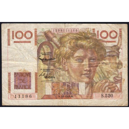 F 28-35 - 02/01/1953 - 100 francs - Jeune Paysan - Série S.520 - Etat : TB