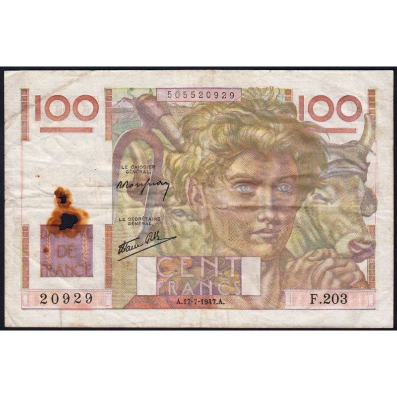 • F 28ter-01 - 17/07/1947 - 100 francs - Jeune Paysan - Série F.203 - Erreur signature - Etat : TB-