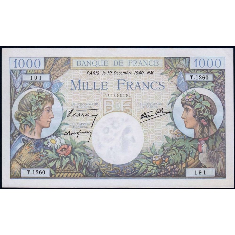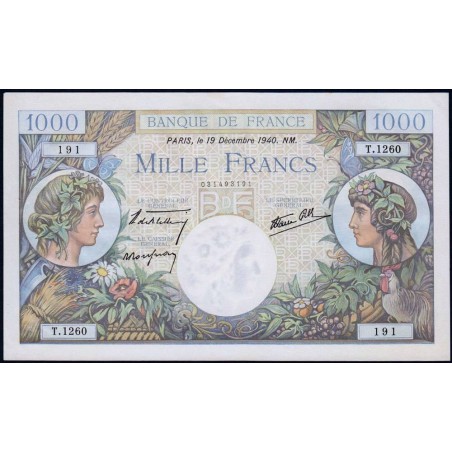 • F 39-03 - 19/12/1940 - 1000 francs - Commerce - Série T.1260 - Etat : SUP+
