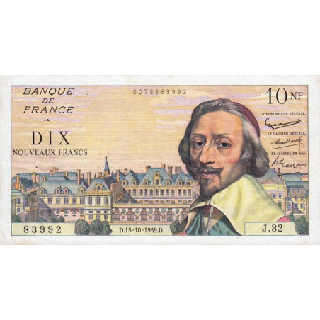 • F 57-03 - 15/10/1959 - 10 nouv. francs - Richelieu - Série J.32 - Etat : TTB+