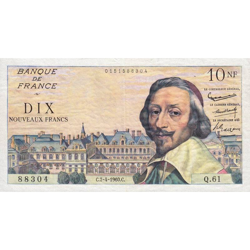 F 57-06 - 07/04/1960 - 10 nouv. francs - Richelieu - Série Q.61 - Etat : TTB à TTB+