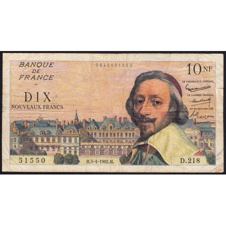 F 57-18 - 05/04/1962 - 10 nouv. francs - Richelieu - Série D.218 - Etat : TB-