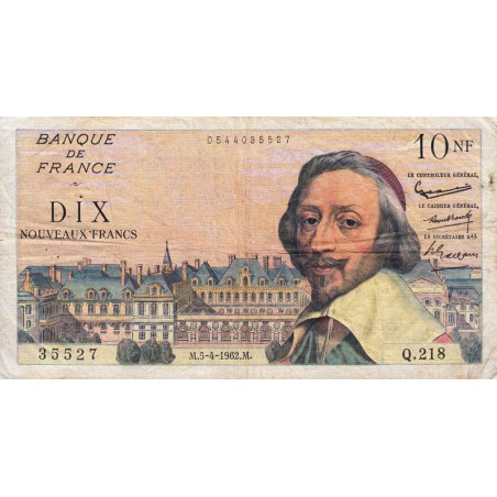 • F 57-18 - 05/04/1962 - 10 nouv. francs - Richelieu - Série Q.218 - Etat : TB