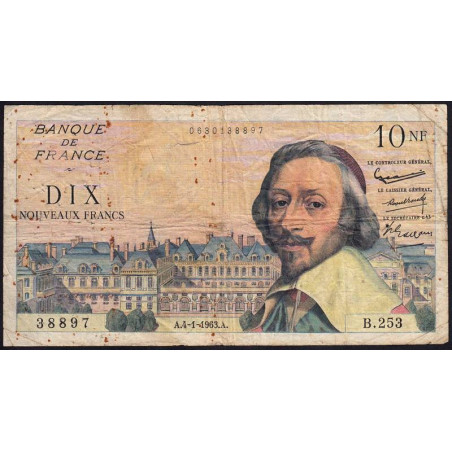 F 57-22 - 04/01/1963 - 10 nouv. francs - Richelieu - Série B.253 - Etat : B+