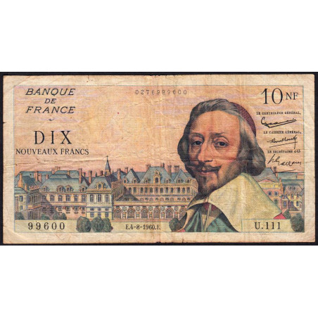 • F 57-09 - 04/08/1960 - 10 nouv. francs - Richelieu - Série U.111 - Etat : TB-
