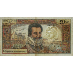 • F 58-02 - 02/07/1959 - 50 nouv. francs - Henri IV - Série X.19 - Etat : TB+
