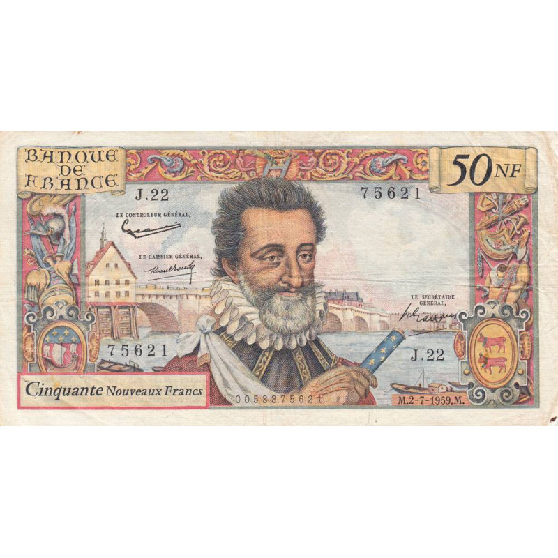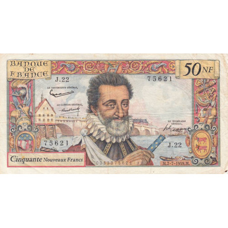 • F 58-02 - 02/07/1959 - 50 nouv. francs - Henri IV - Série J.22 - Etat : TB+