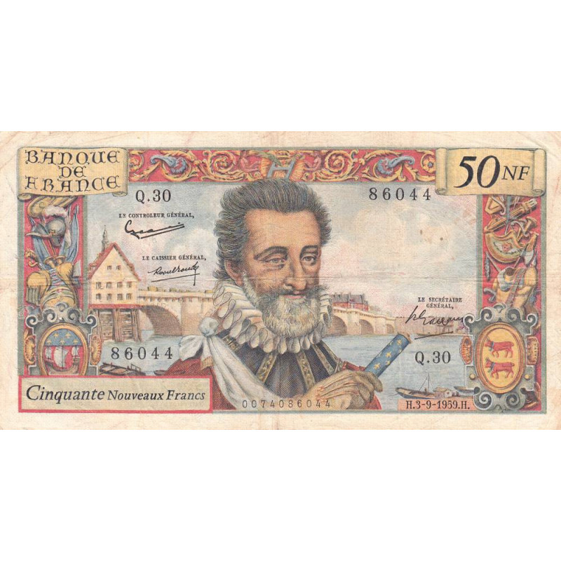 F 58-03 - 03/09/1959 - 50 nouv. francs - Henri IV - Série Q.30 - Etat : TB