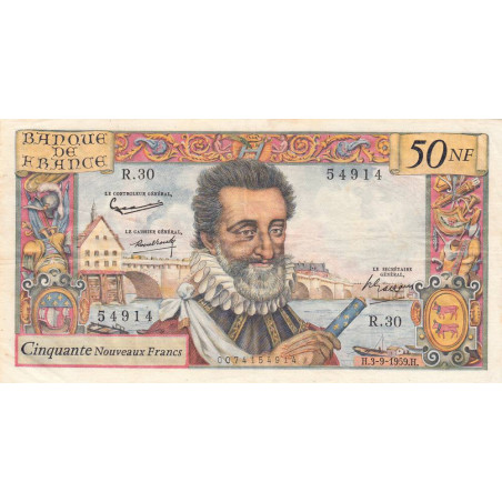 • F 58-03 - 03/09/1959 - 50 nouv. francs - Henri IV - Série R.30 - Etat : TTB