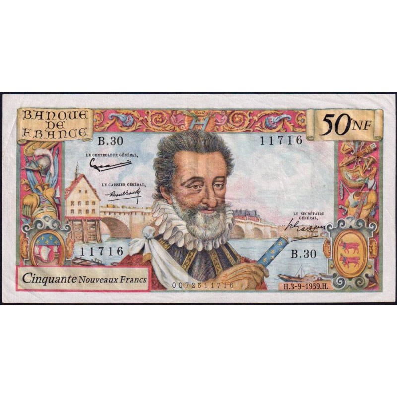 F 58-03 - 03/09/1959 - 50 nouv. francs - Henri IV - Série B.30 - Etat : TTB à TTB+