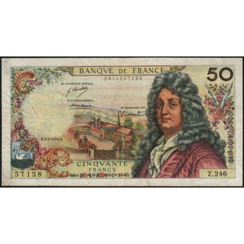 F 64-27 - 05/09/1974 - 50 francs - Racine - Série Z.246 - Etat : TB
