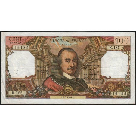 F 65-14 - 01/09/1966 - 100 francs - Corneille - Série K.185 - Etat : TB
