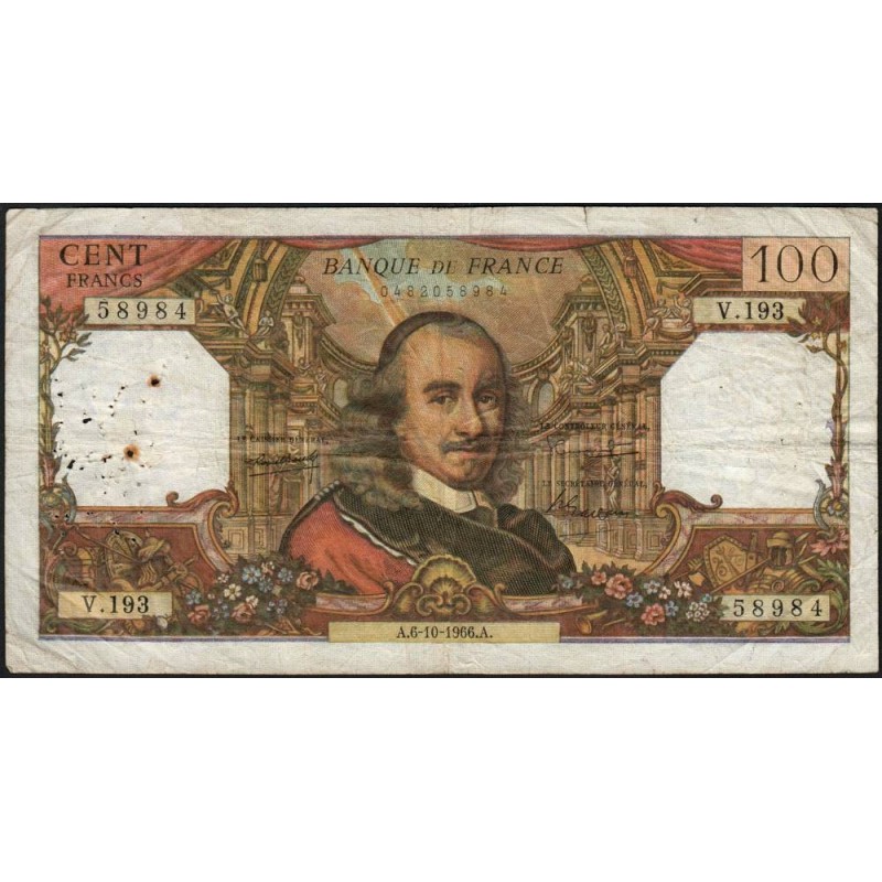 F 65-15 - 06/10/1966 - 100 francs - Corneille - Série V.193 - Etat : B+
