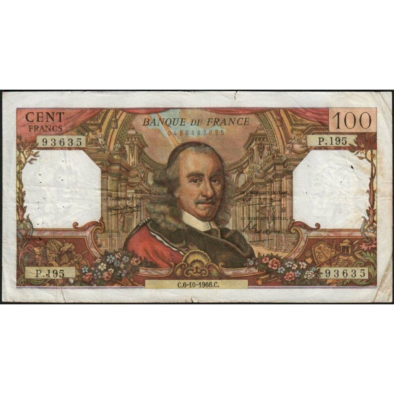 F 65-15 - 06/10/1966 - 100 francs - Corneille - Série P.195 - Etat : TB-
