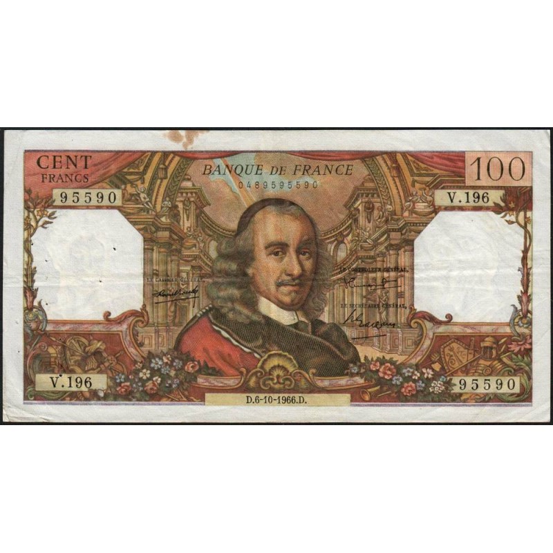 F 65-15 - 06/10/1966 - 100 francs - Corneille - Série V.196 - Etat : TB