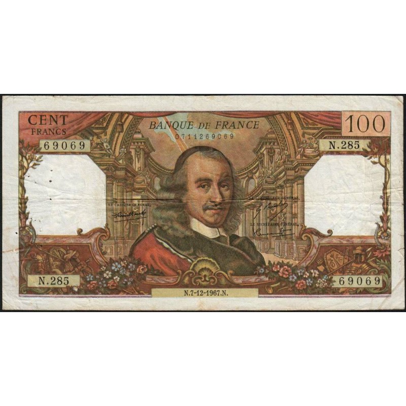 F 65-19 - 07/12/1967 - 100 francs - Corneille - Série N.285 - Etat : TB-