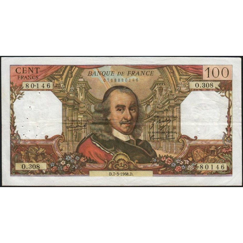 F 65-21 - 07/03/1968 - 100 francs - Corneille - Série O.308 - Etat : TTB-