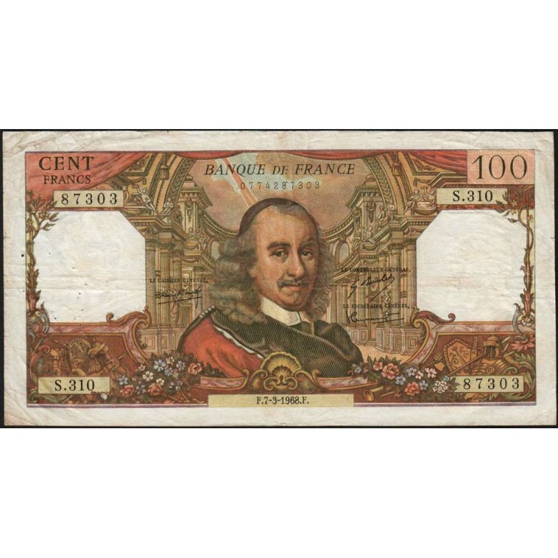 F 65-21 - 07/03/1968 - 100 francs - Corneille - Série S.310 - Etat : TB-