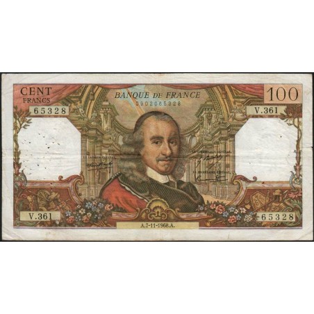 F 65-24 - 07/11/1968 - 100 francs - Corneille - Série V.361 - Etat : TB