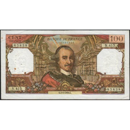 F 65-27 - 05/06/1969 - 100 francs - Corneille - Série N.415 - Etat : TB+