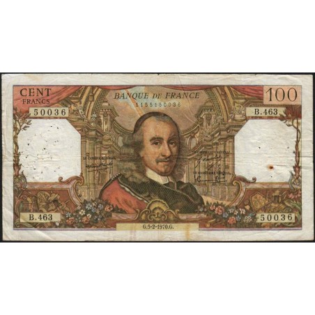 F 65-30 - 05/02/1970 - 100 francs - Corneille - Série B.463 - Etat : TB-