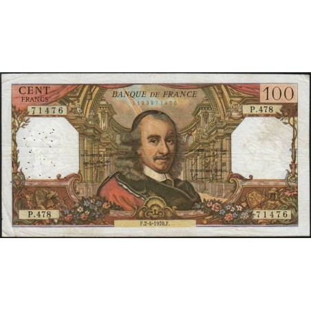 F 65-31 - 02/04/1970 - 100 francs - Corneille - Série P.478 - Etat : TB