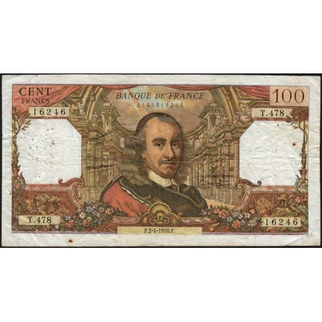 F 65-31 - 02/04/1970 - 100 francs - Corneille - Série T.478 - Etat : TB-