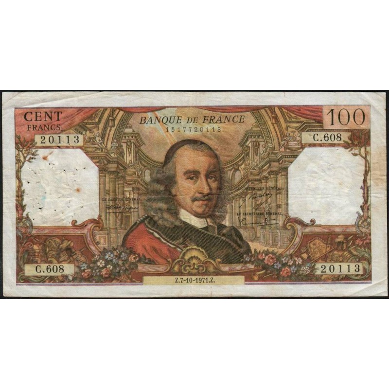 F 65-37 - 07/10/1971 - 100 francs - Corneille - Série C.608 - Etat : TB-