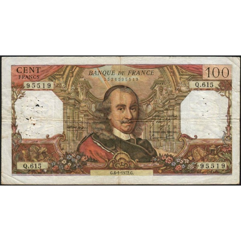 F 65-38 - 06/01/1972 - 100 francs - Corneille - Série Q.615 - Etat : TB-