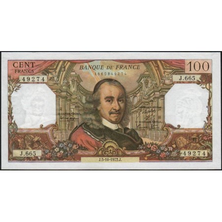 F 65-40 - 05/10/1972 - 100 francs - Corneille - Série J.665 - Etat : TTB+