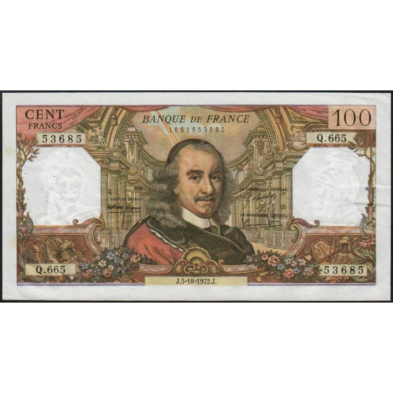 F 65-40 - 05/10/1972 - 100 francs - Corneille - Série Q.665 - Etat : TTB+