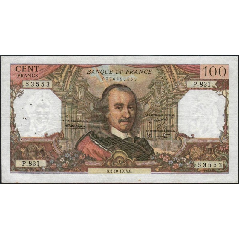 F 65-47 - 03/10/1974 - 100 francs - Corneille - Série S.831 - Etat : TB