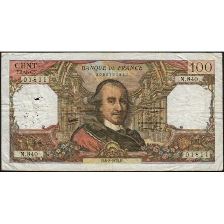F 65-48 - 06/02/1975 - 100 francs - Corneille - Série N.840 - Etat : B+